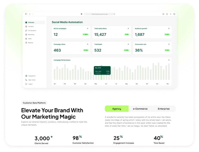 The redesigned Bright SaaS landing page simplified the value proposition and streamlined the user journey, turning more visitors into qualified leads and trial users.