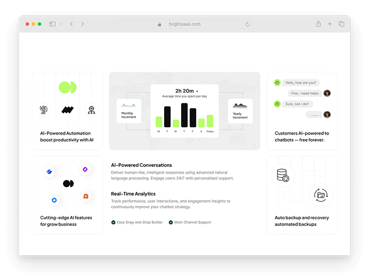The Brightsaas landing page was designed to showcase a powerful SaaS solution through a clean, modern, and conversion-focused interface. It simplifies complex product features into a visually engaging experience, allowing users to quickly understand the platform.